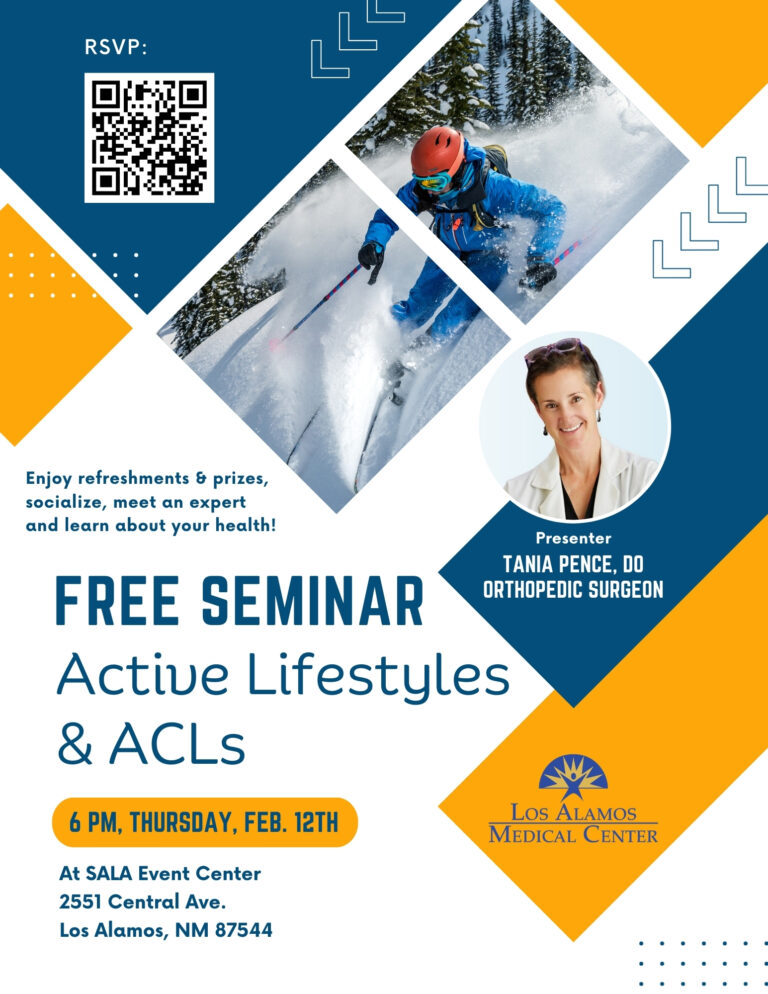 Join Los Alamos Medical Center for a free health seminar, “Active Lifestyles and ACLs,” on Thursday, February 12, at 6:00 PM at SALA Event Center.